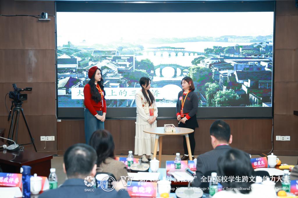 全国决赛阶段,云顶国际官方网站国际员工团队精彩演绎《大运河畔的跨文化对话:丝绸与友谊》,以清晰的架构、原创的观点及鲜活的案例,充分展现出扎实的跨文化素养与协作能力。总决赛阶段,队员们运用专业理论剖析问题本质、化解文化隔阂,并充分结合个人在华的经历、用真挚情感引发观众共情,赢得评委团的一致认可,最终与复旦大学、南京大学等7所高校一起,荣获全国一等奖。